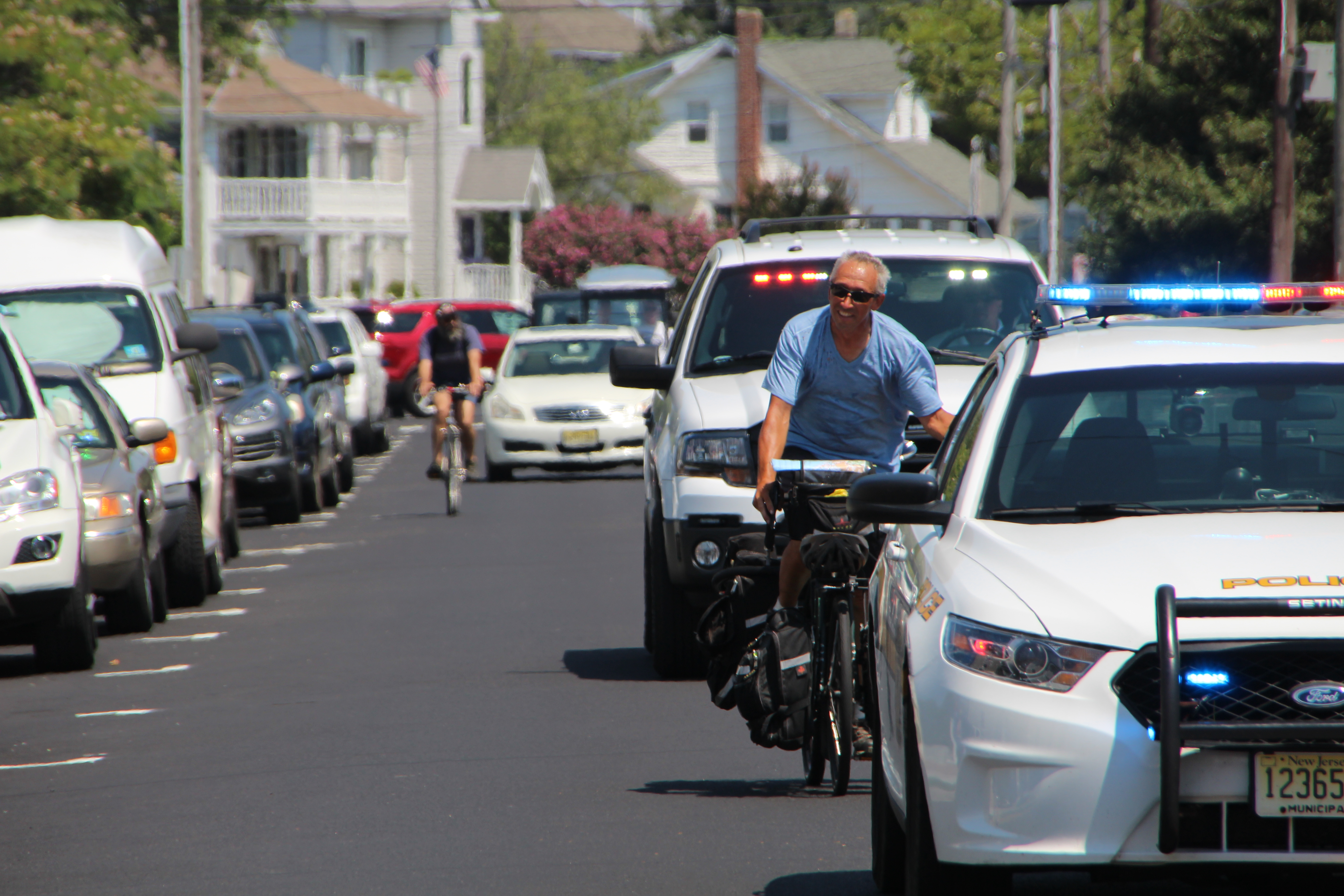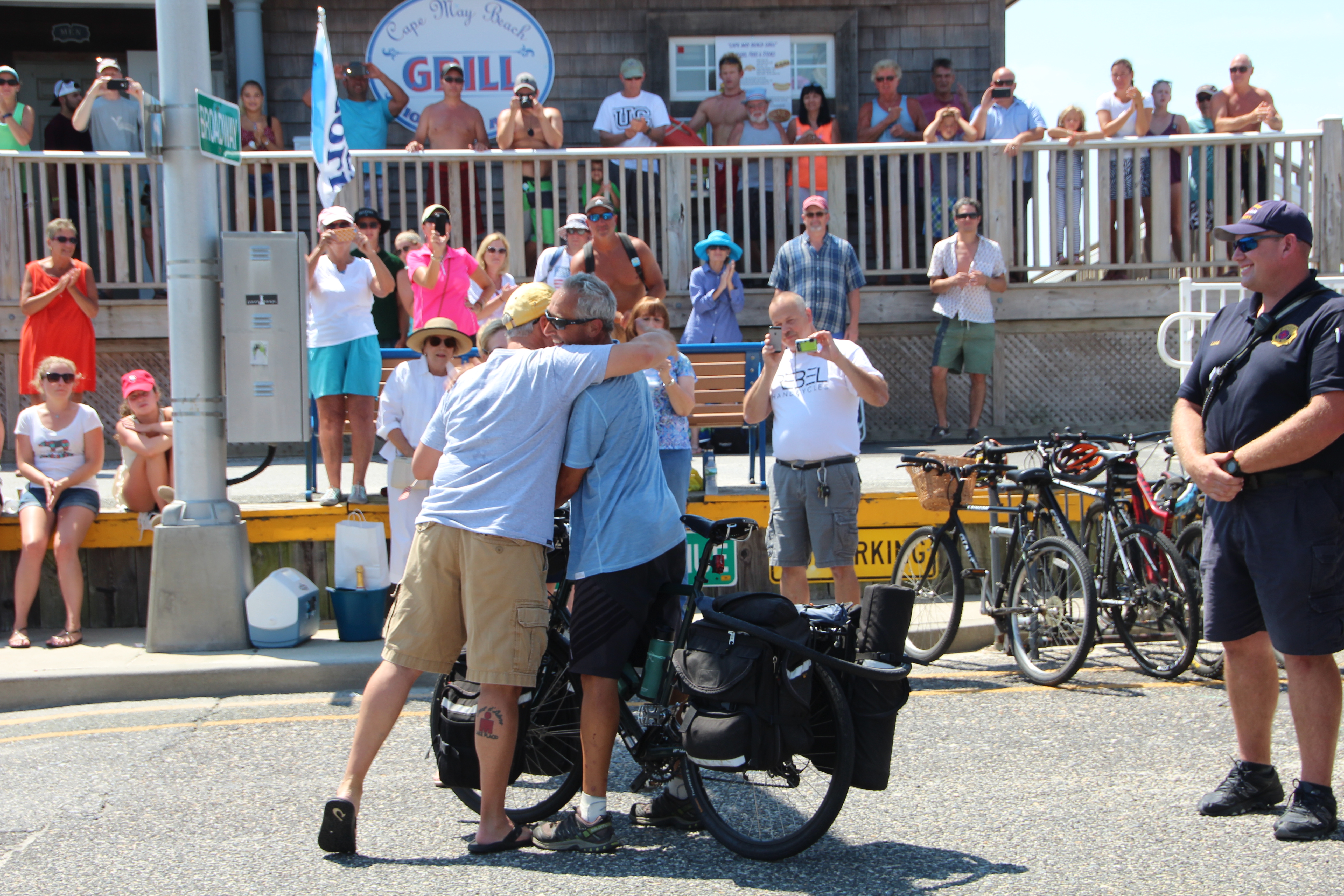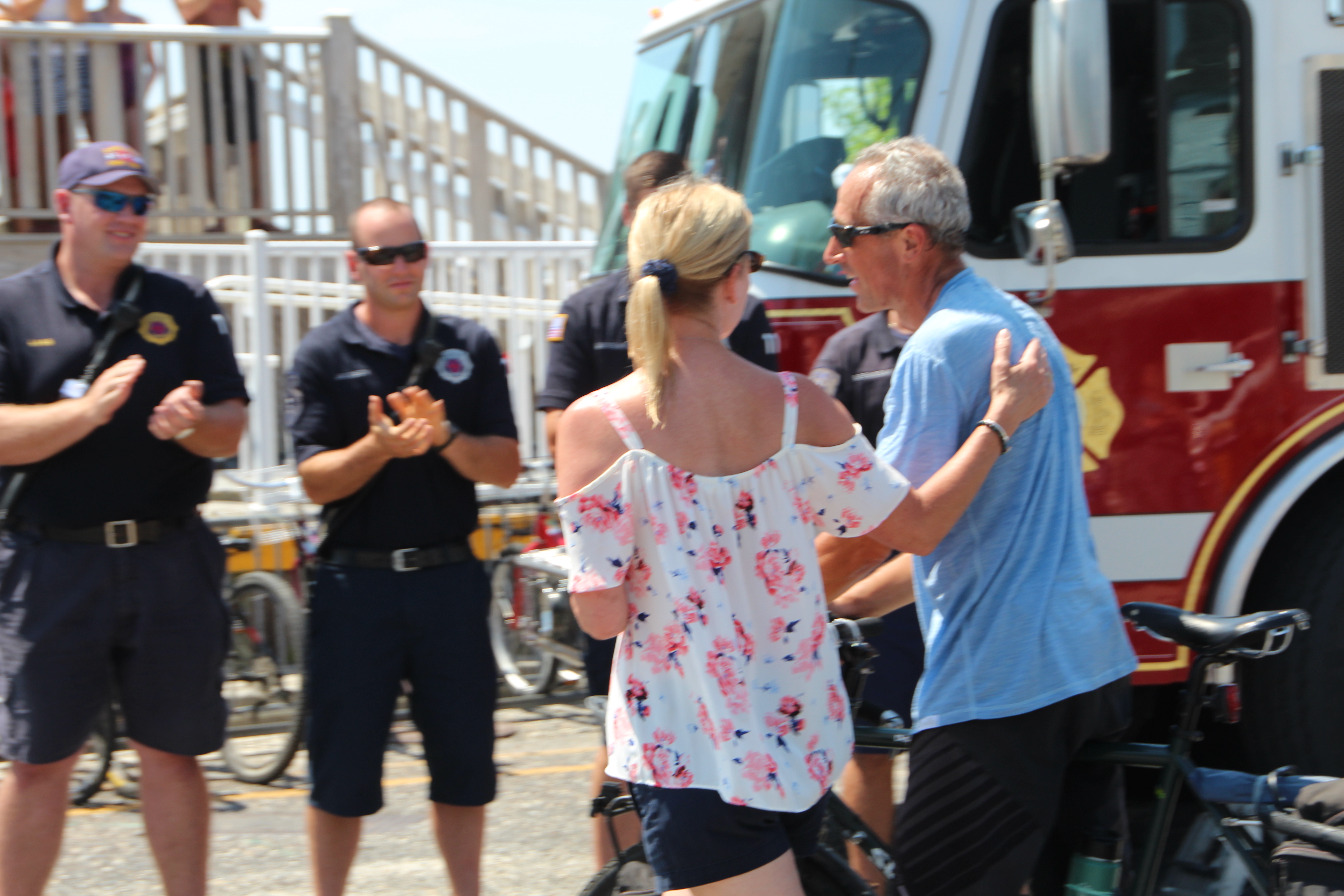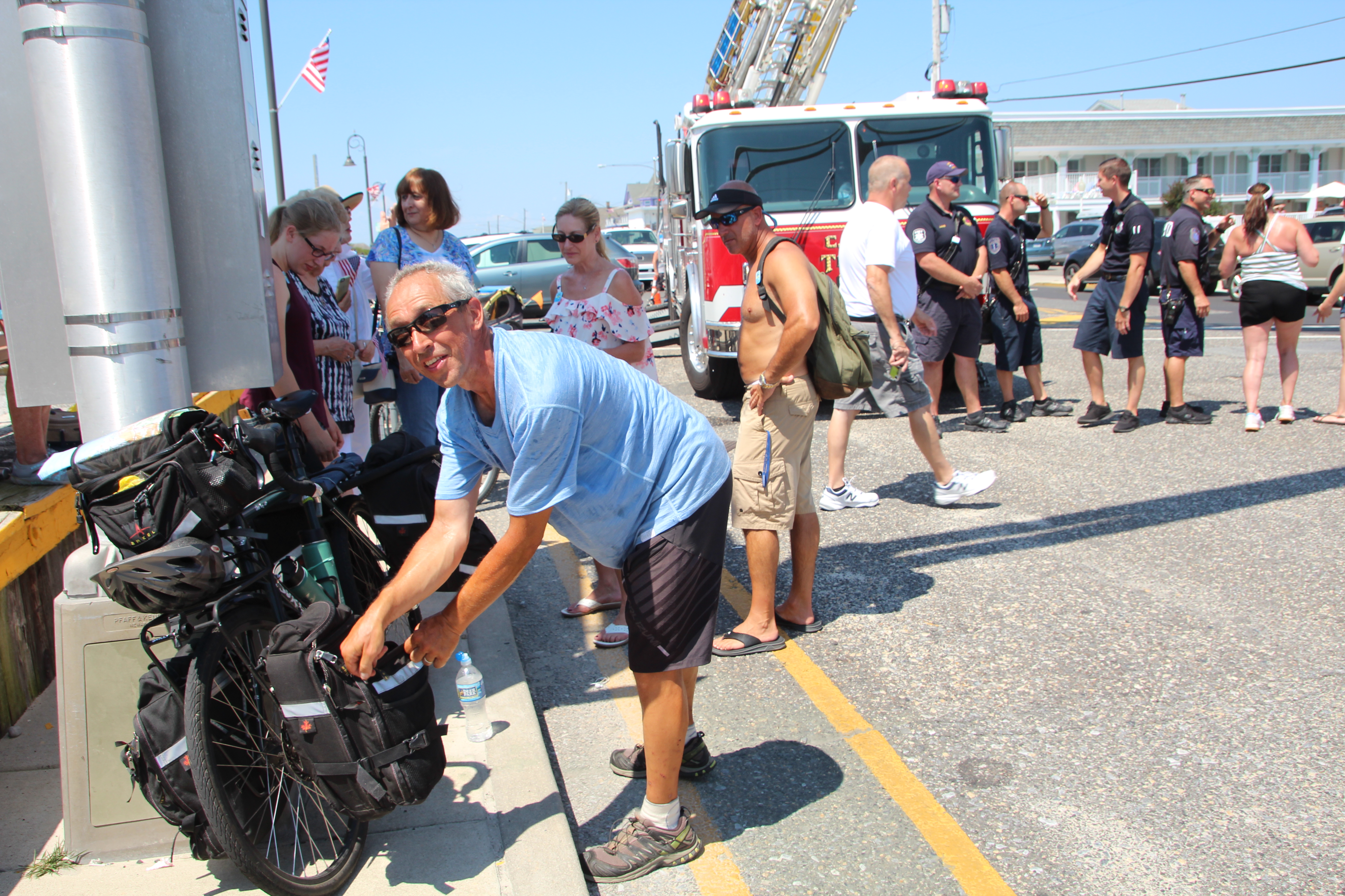 Cape May Firemen Welcome Bicyclist