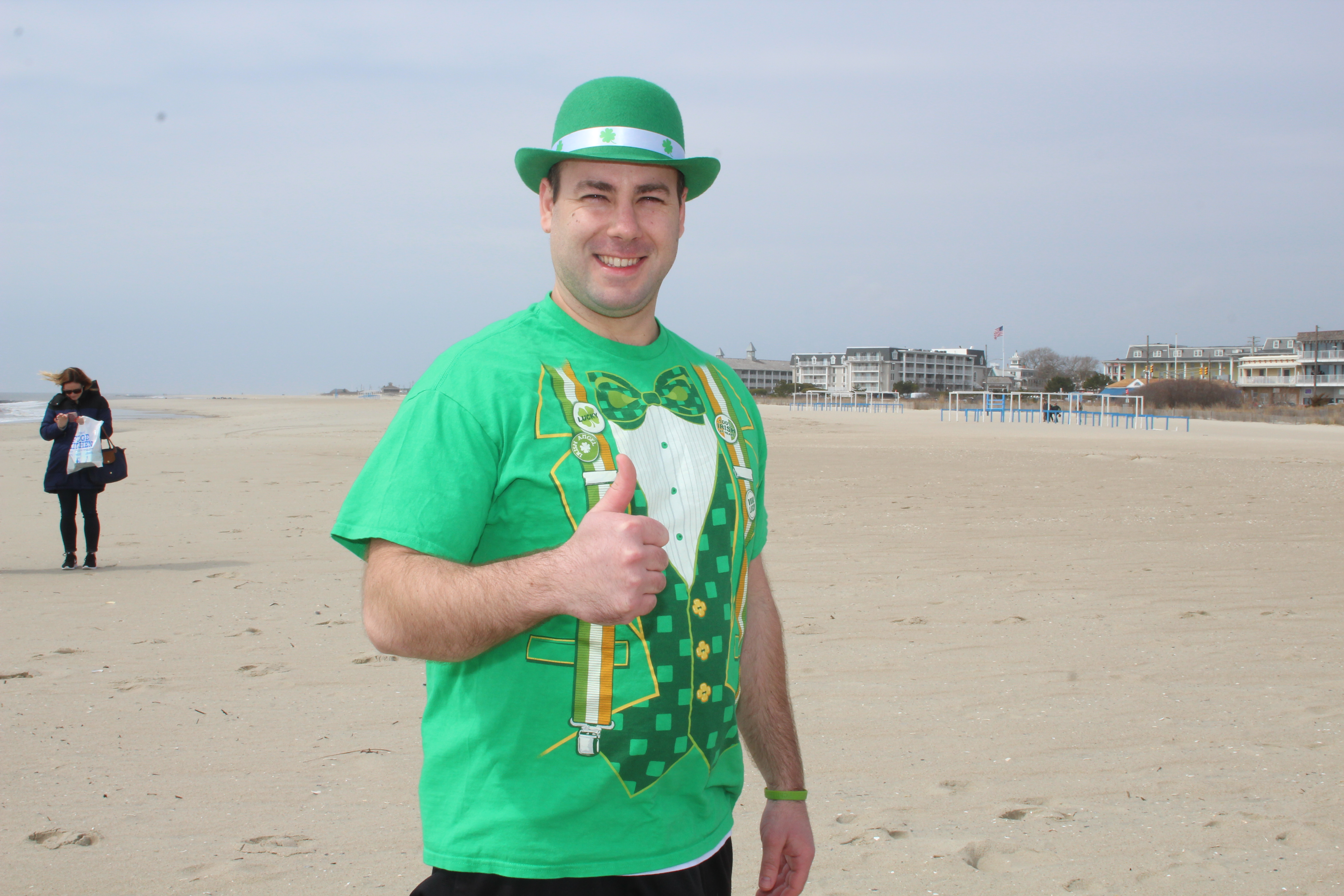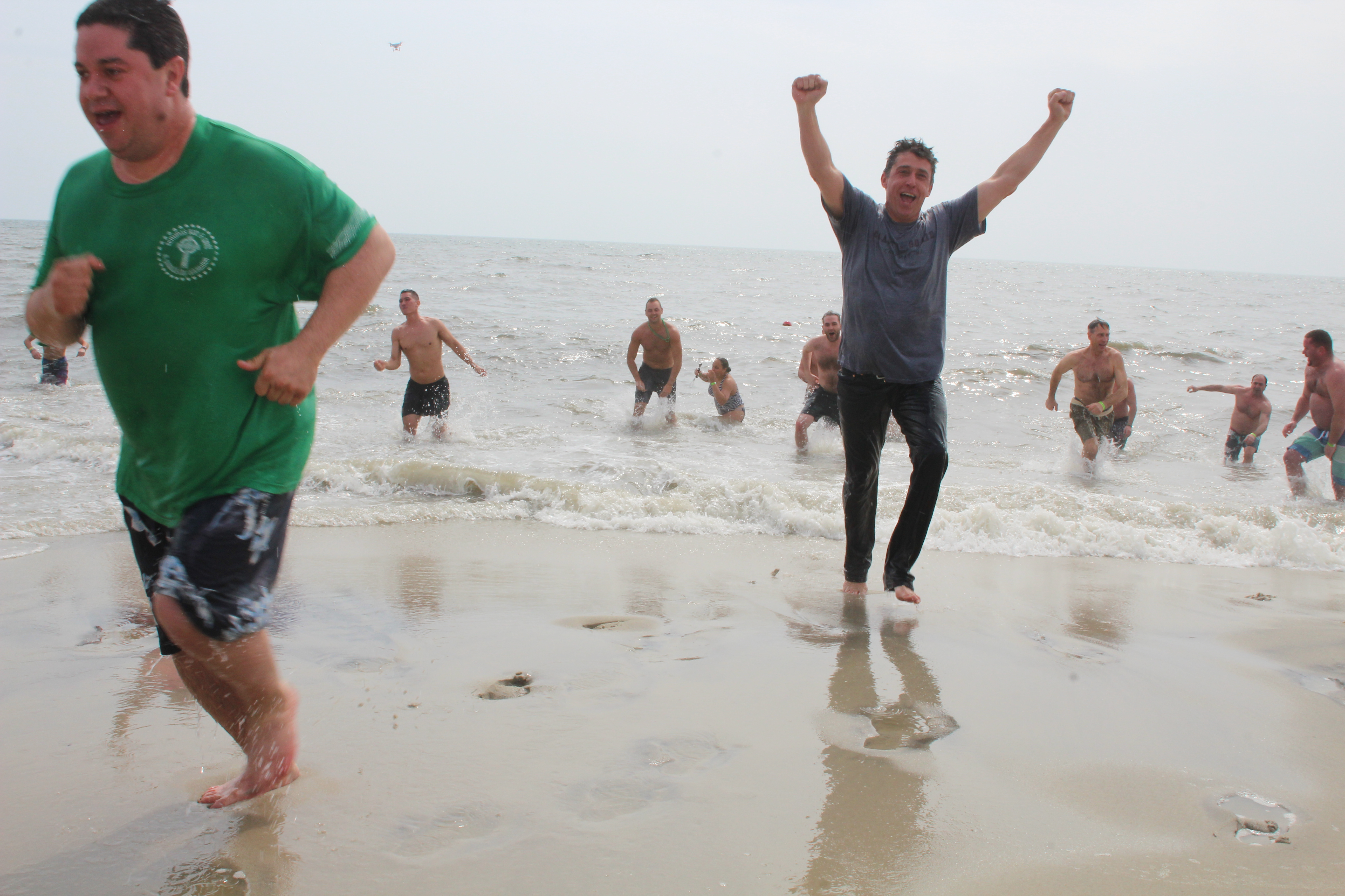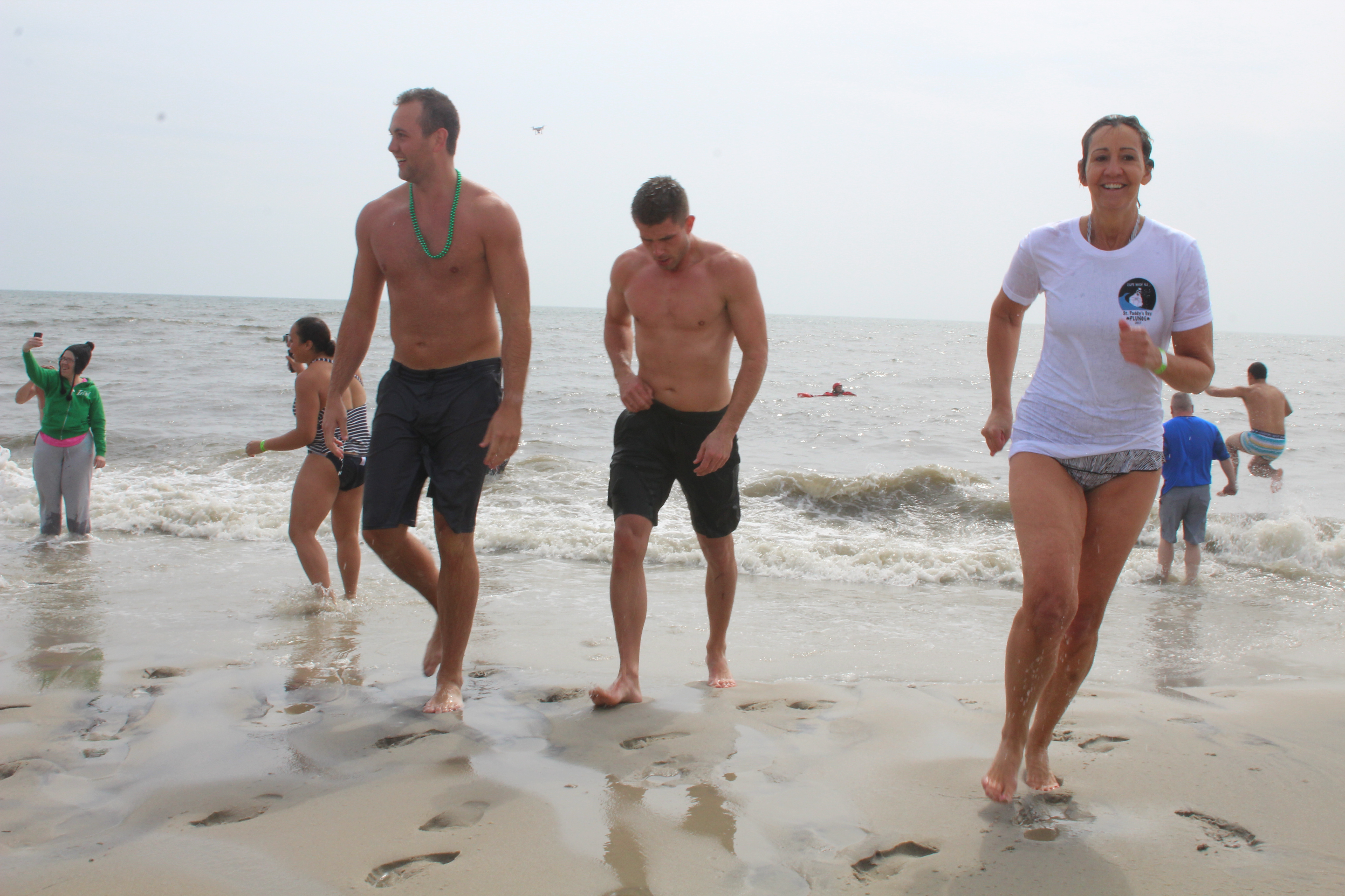 Cape May Deputy Mayor Shaine Meirer led the charge into the 40 degree Atlantic Ocean in the Cape May polar bear plunge organized by Carney’s owner Sean Carney. Dozens of hearty souls participated in the first annual plunge to raise funds for Family Promise of Cape May County.