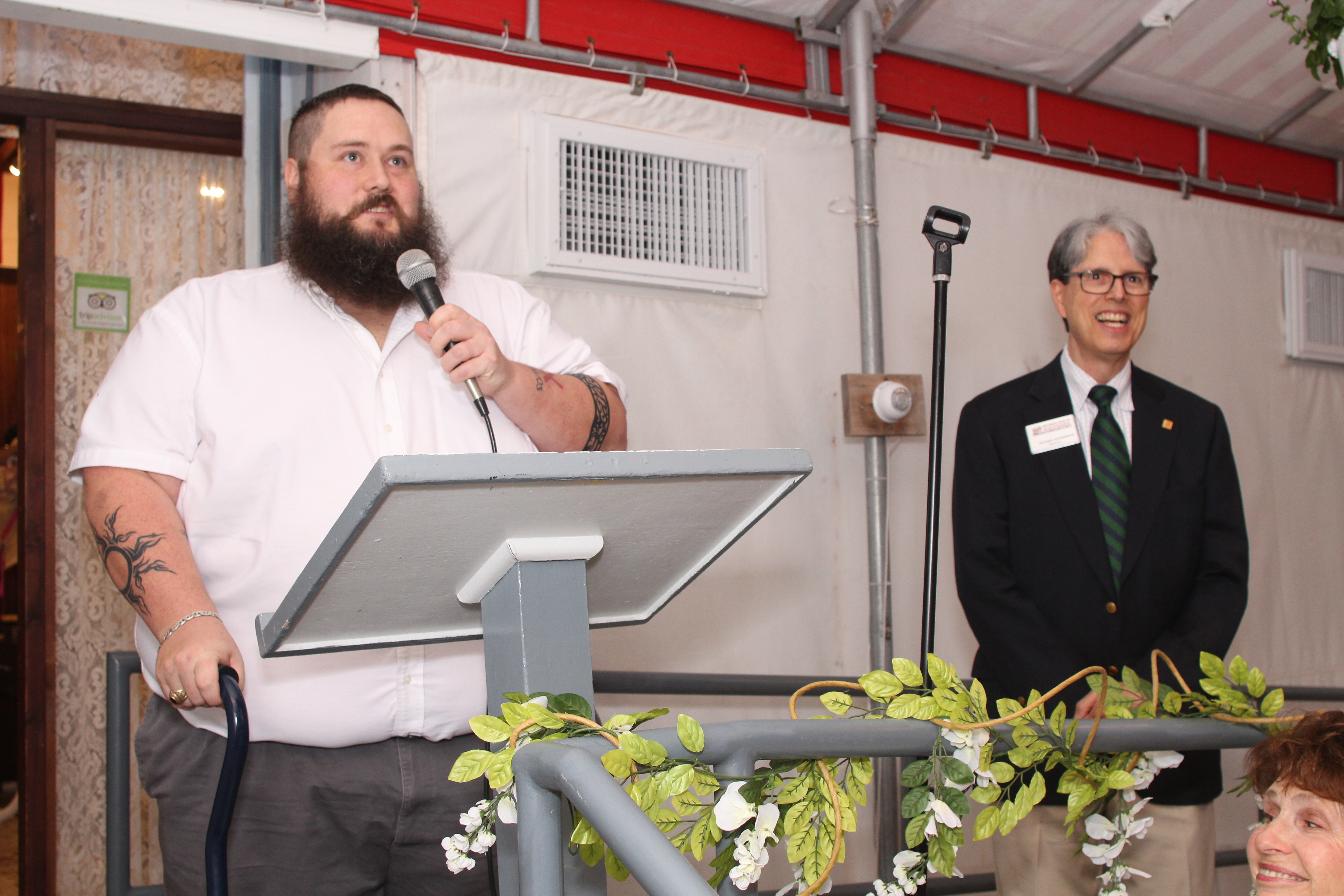 “I gave them a whole lot of pictures, newspaper clips and information and they made it beautiful,” Ben Miller said in his remarks referring to the collaboration of the design team of Mary Stewart, Jean Barraclough and Catherine Bosna.