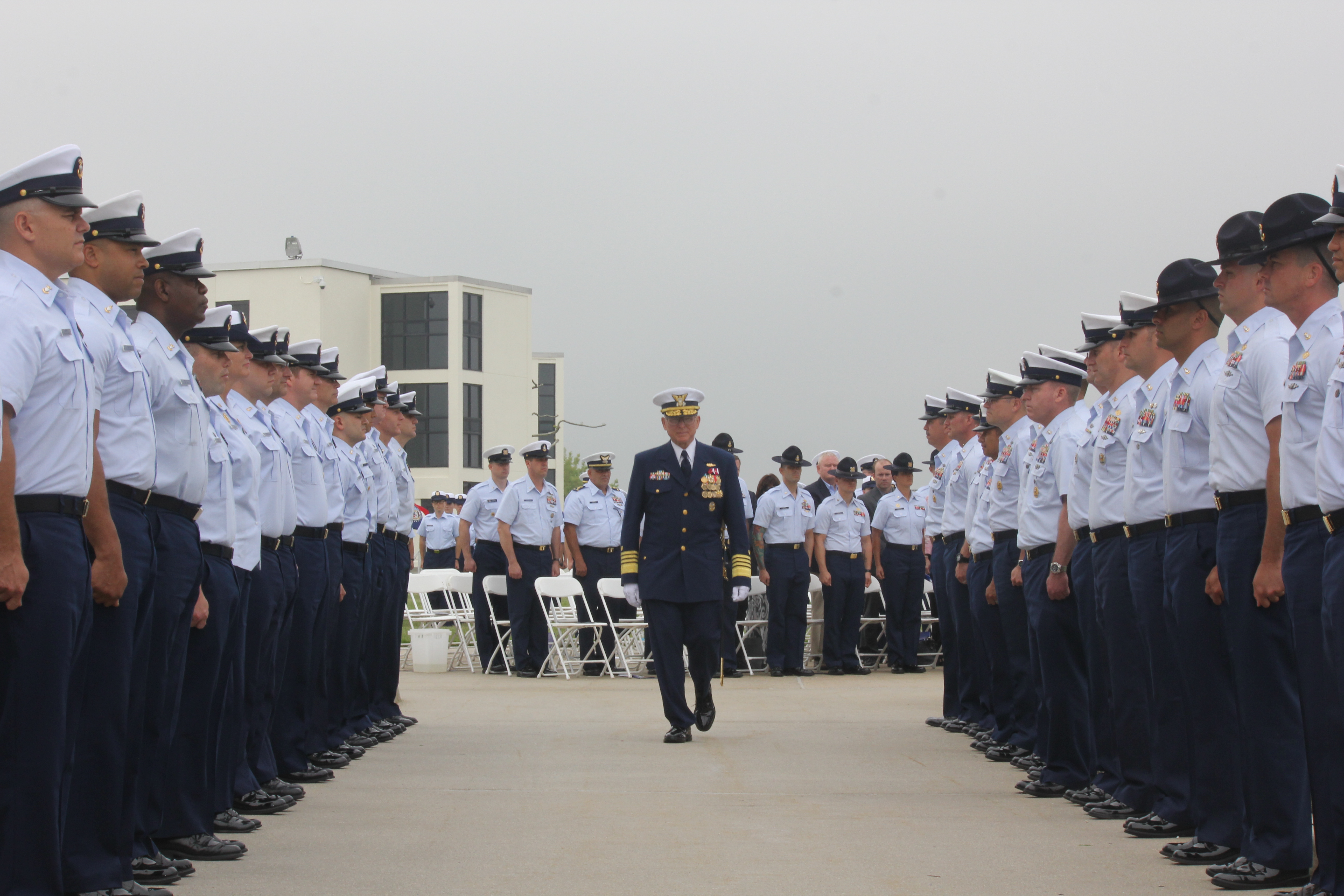 Thirty-two years ago when Michael P. Leavitt joined the Coast Guard and completed boot camp in Cape May, he probably did not envision his own Change of Watch ceremony, on the same parade field from where he graduated. His original interest in the Coast Guard piqued when he saw a poster on a telephone pole in his home town.