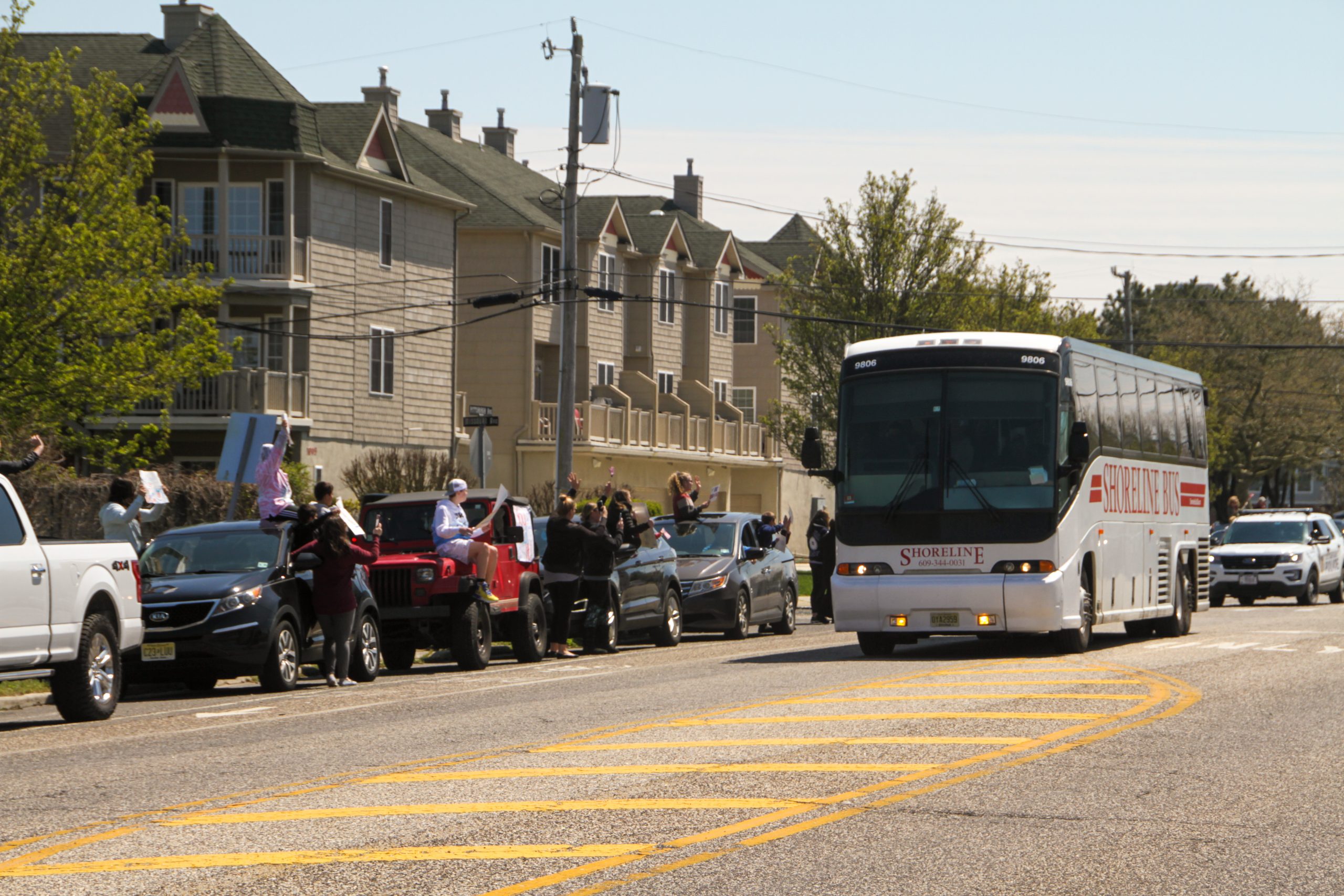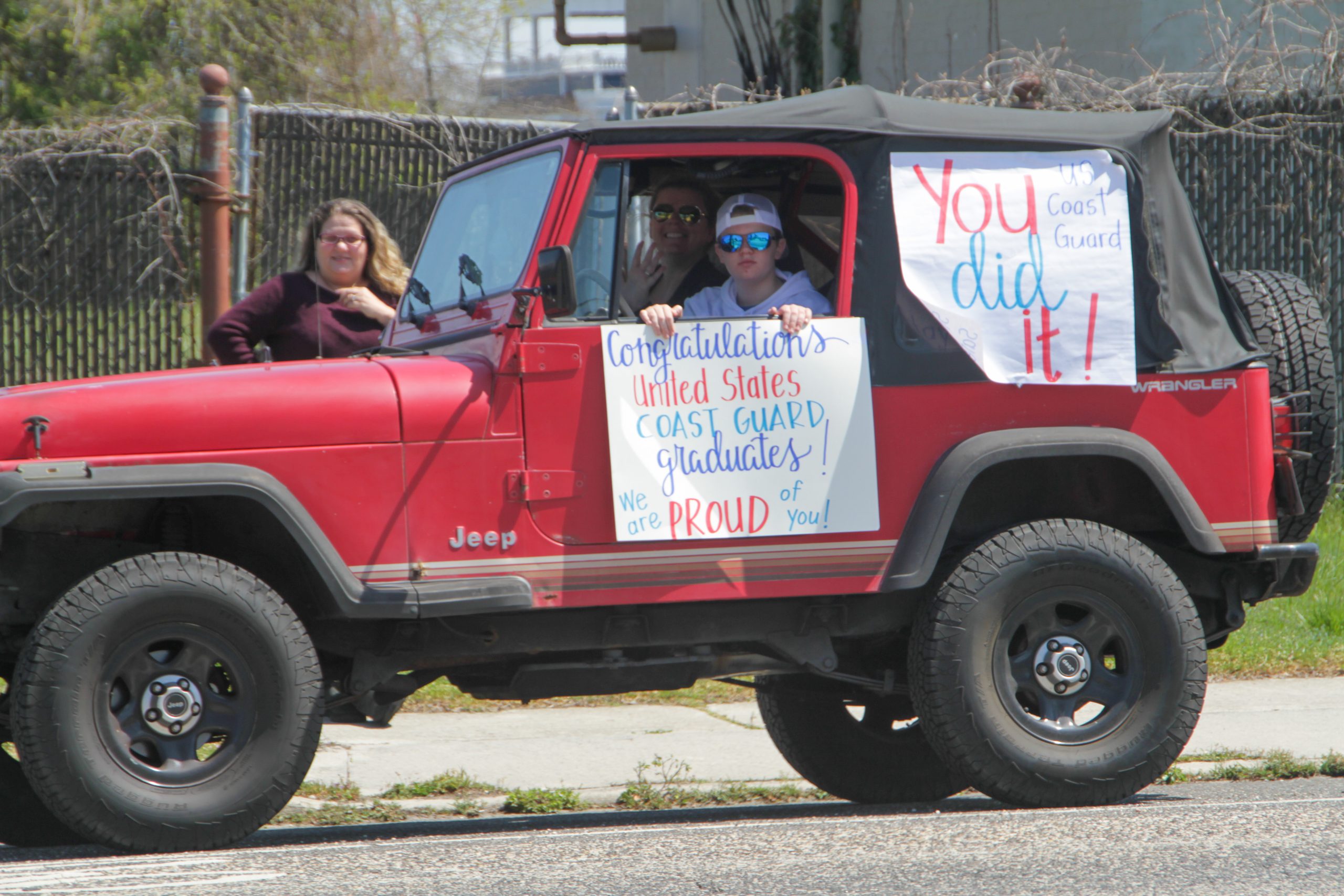 “We were humbled yesterday to see the outpouring of support from the local community and our Coast Guard families,” Captain Kathy Felger, Commander TRACEN said. “What started a couple of weeks ago as a small idea by a couple of Coastie families, to send off our newest graduates with a smile and a wave, turned into all of Pennsylvania and Pittsburgh Avenues lined with families, local leaders, American flags, cars and friendly signs (all safely distanced!) showing pride for our Coast Guard’s newest shipmates since their own families are not able to travel to Cape May in this pandemic environment.” Captain Felger wrote in a Facebook message.