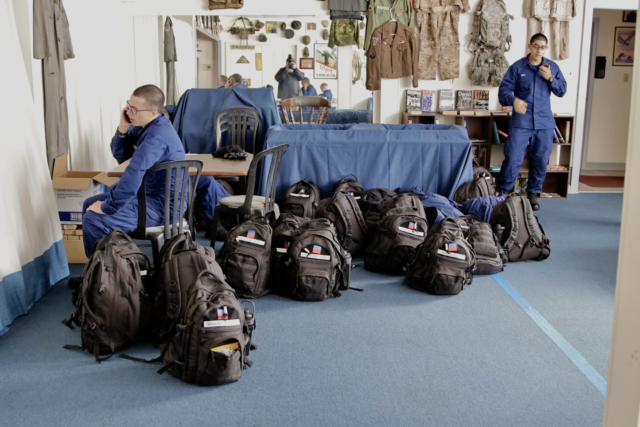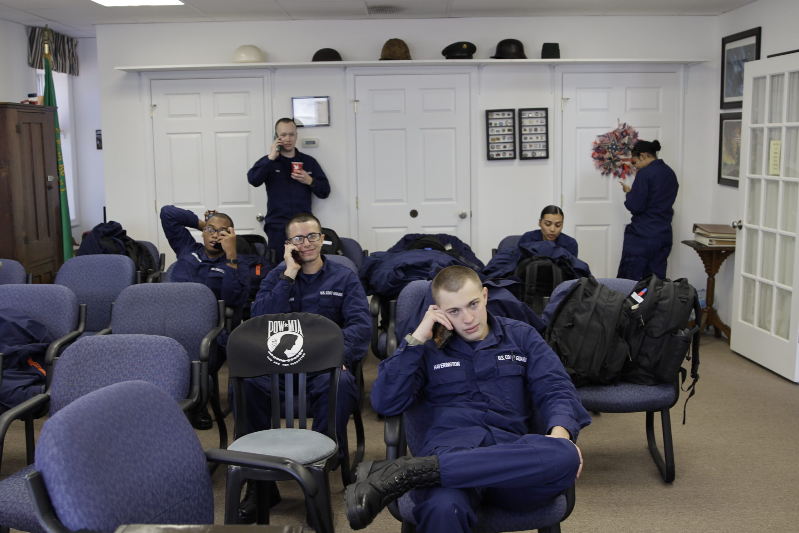The families, organizations, and recruits are paired at Training Center Cape May’s Flores Gymnasium before departing the training center. While the recruits are off base, they are allowed to eat as much as they want, call home, and relax before beginning training again the next day.
