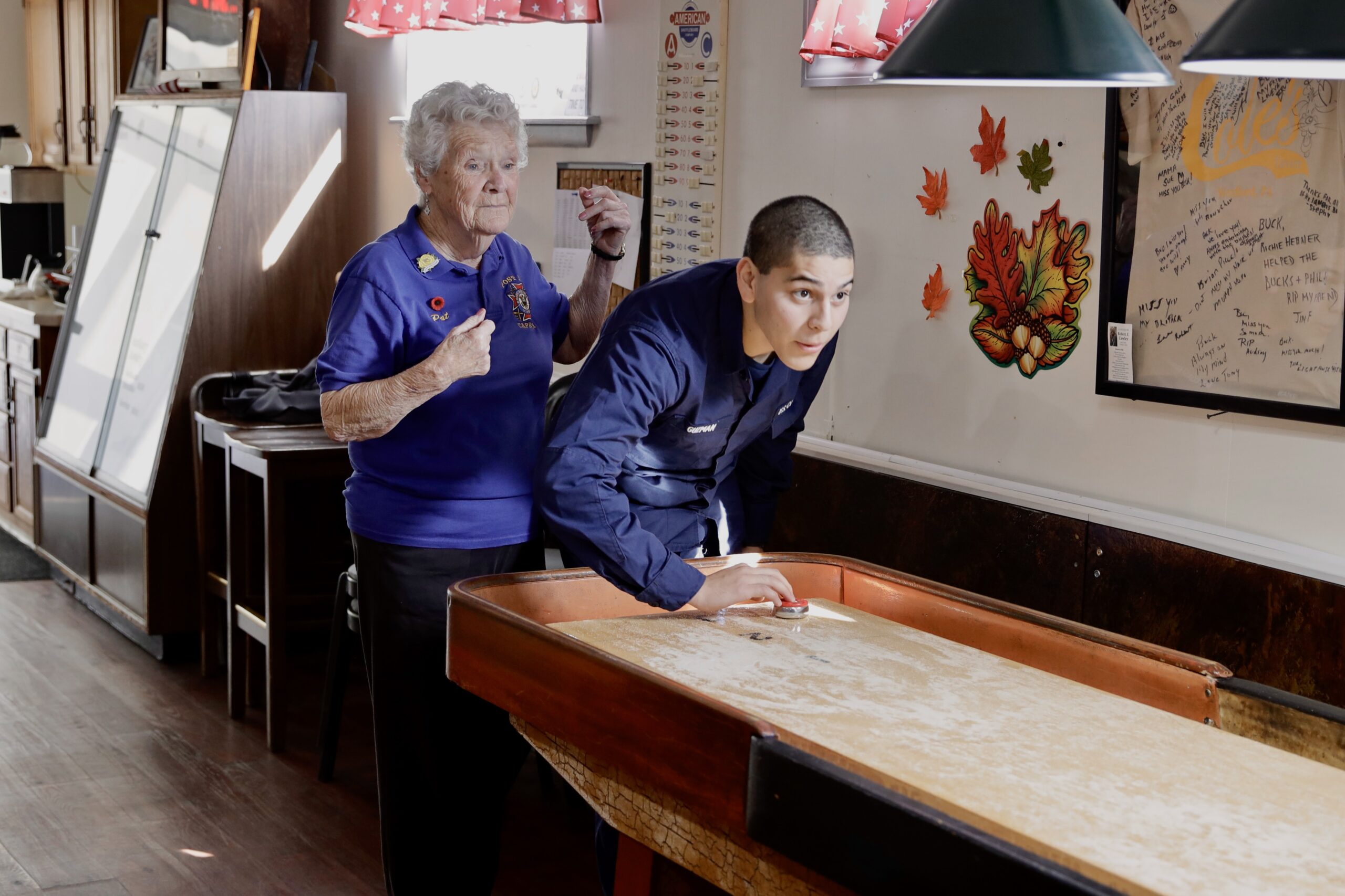 Recruits Riley and Fiala asked to have their photo taken together so they could each share it with their mothers. The pair, new besties, were from Forked River, New Jersey, and a town further north, Beverly, New Jersey. They became fast friends and shipmates after meeting in boot camp.