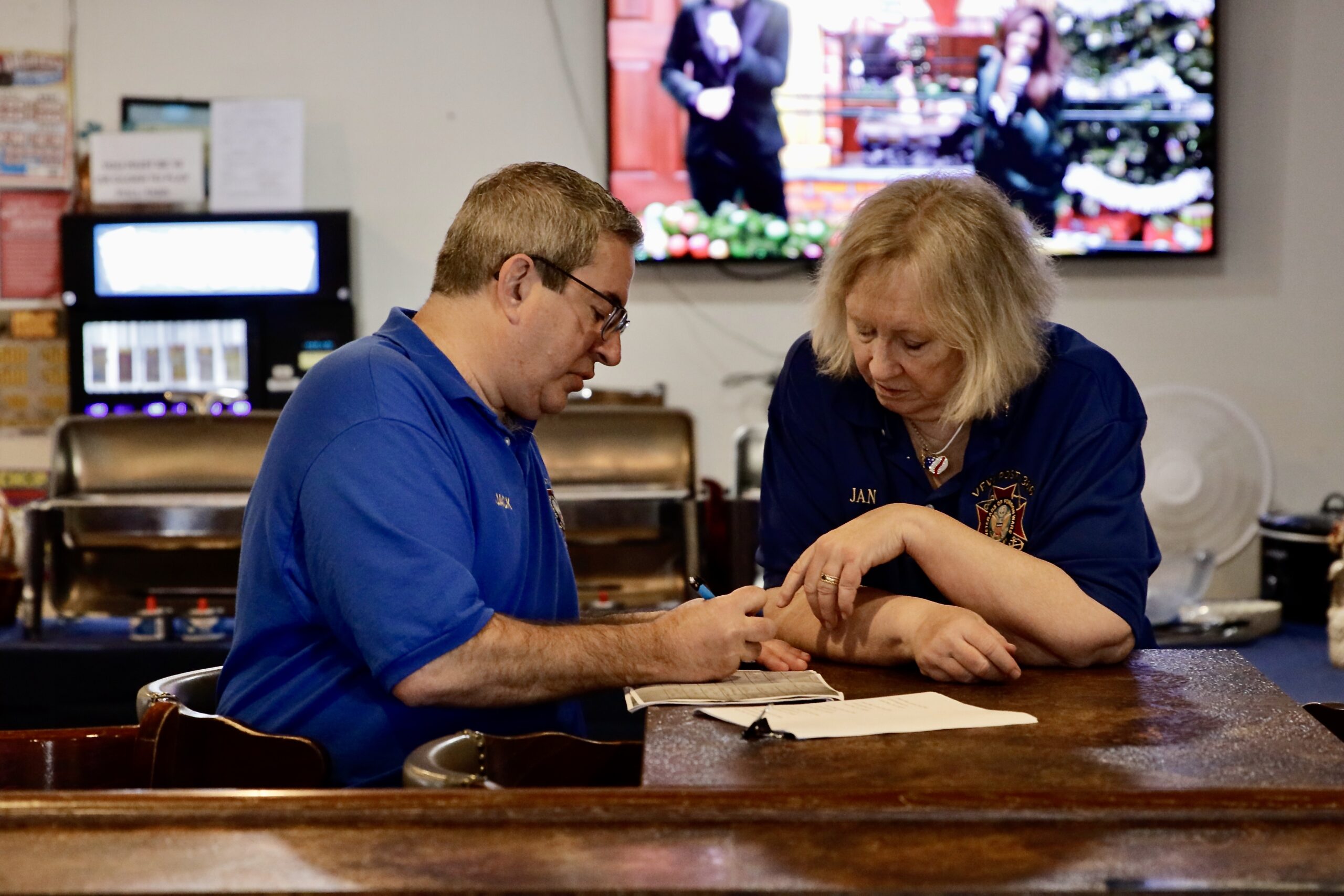 Veteran’s Home Association (VHA) member Bruce Brown of Cape May was in the kitchen loading ovens with hotel-size pans of turkey. “We have sausage and peppers, meatballs, garlic mashed potatoes, stuffing, and all the trimmings,” Brown said. “It’s Thanksgiving Dinner on steroids.”