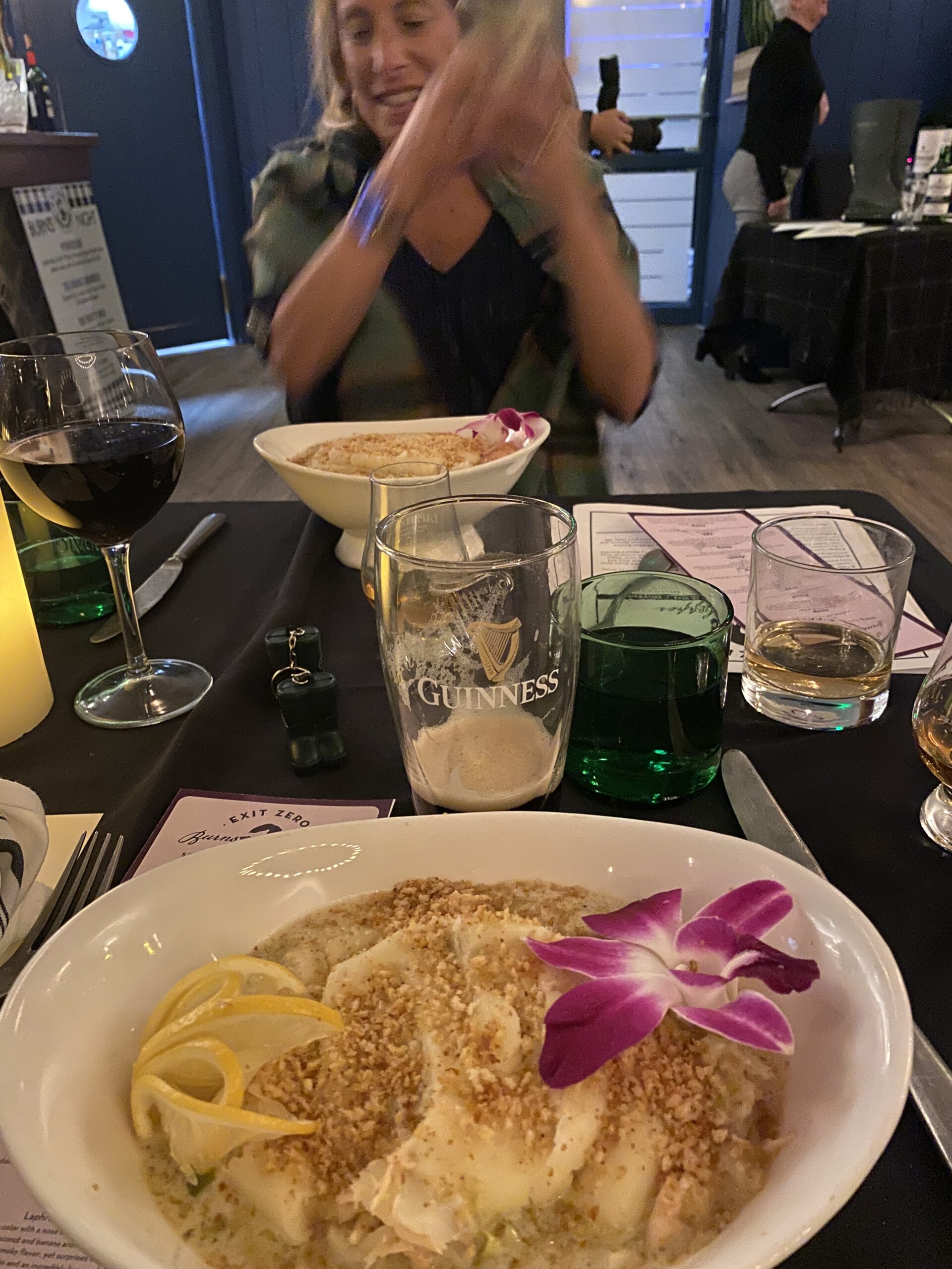 Great food. Great table companions and fantastic music to listen to and dance to were all part of the evening.