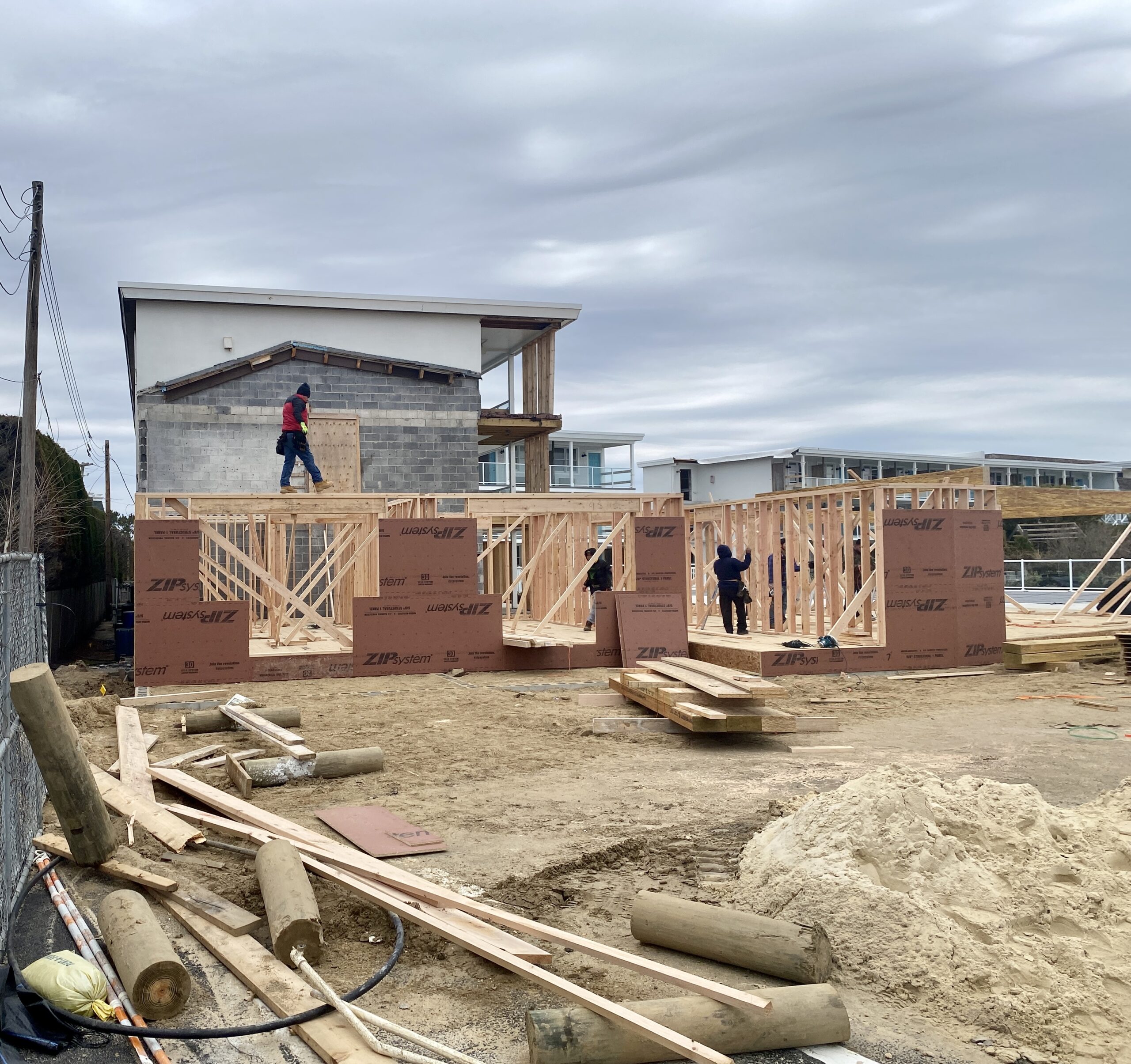 The private sector is no less busy this year. The Beach Shack, a Cape Resorts Group operation, is adding an addition to the west side of the property. Some guests will get the treat of being in brand-new ocean-facing motel rooms this summer. Work there is steady.
