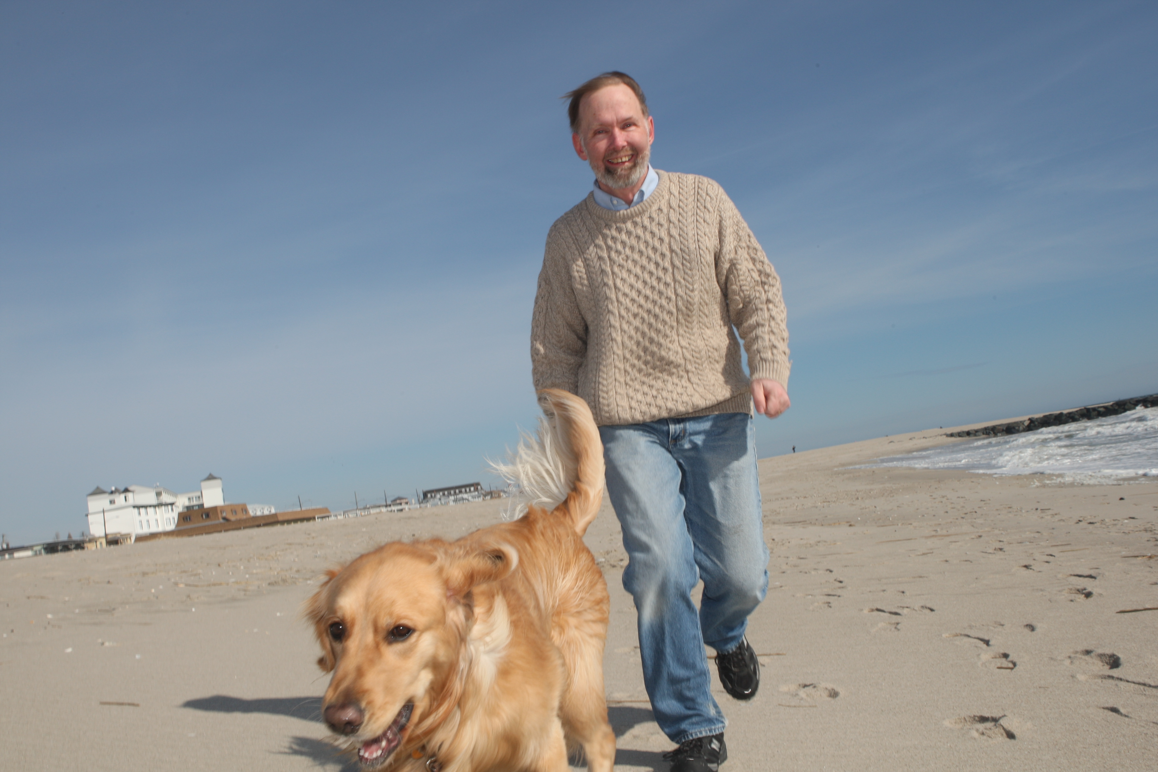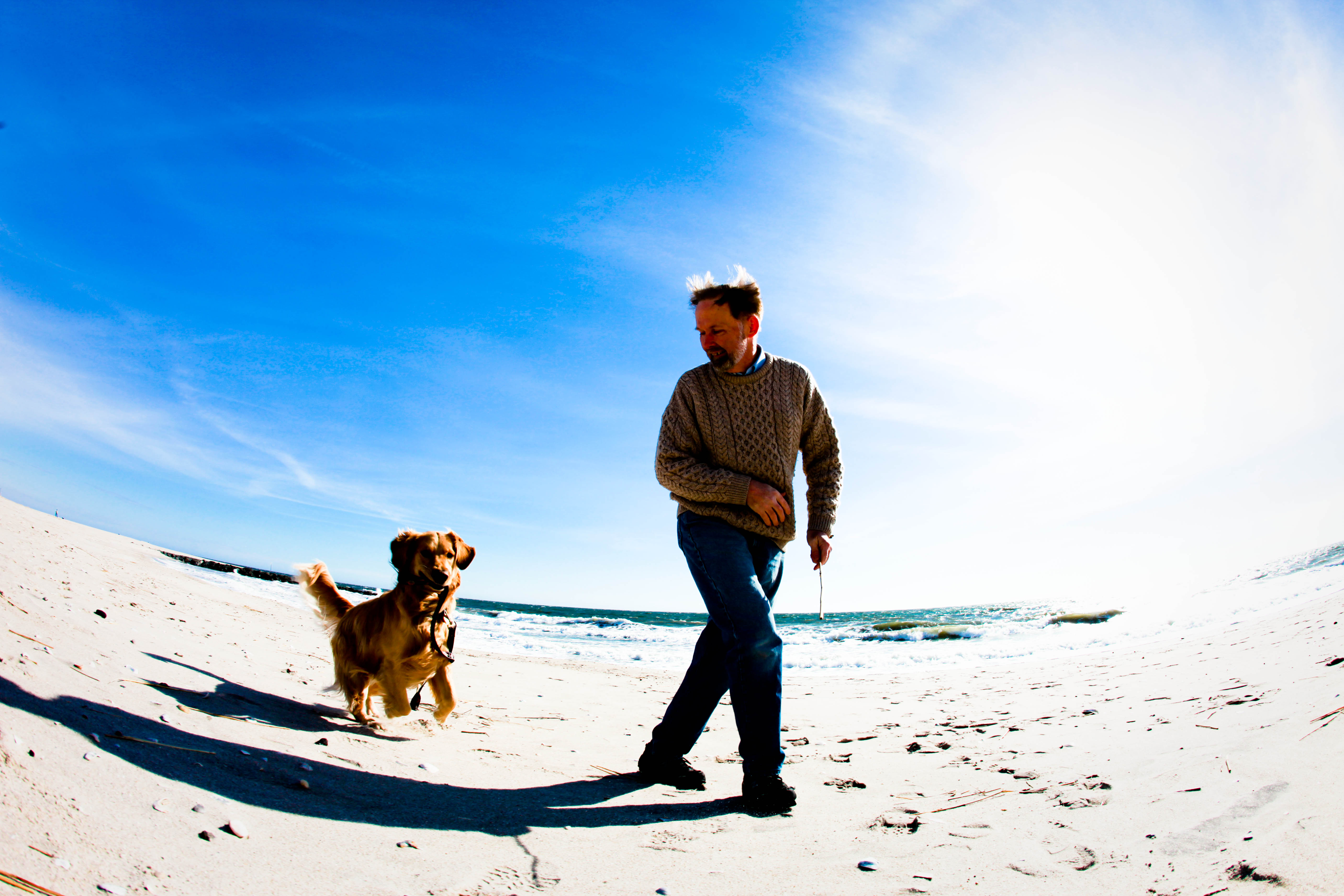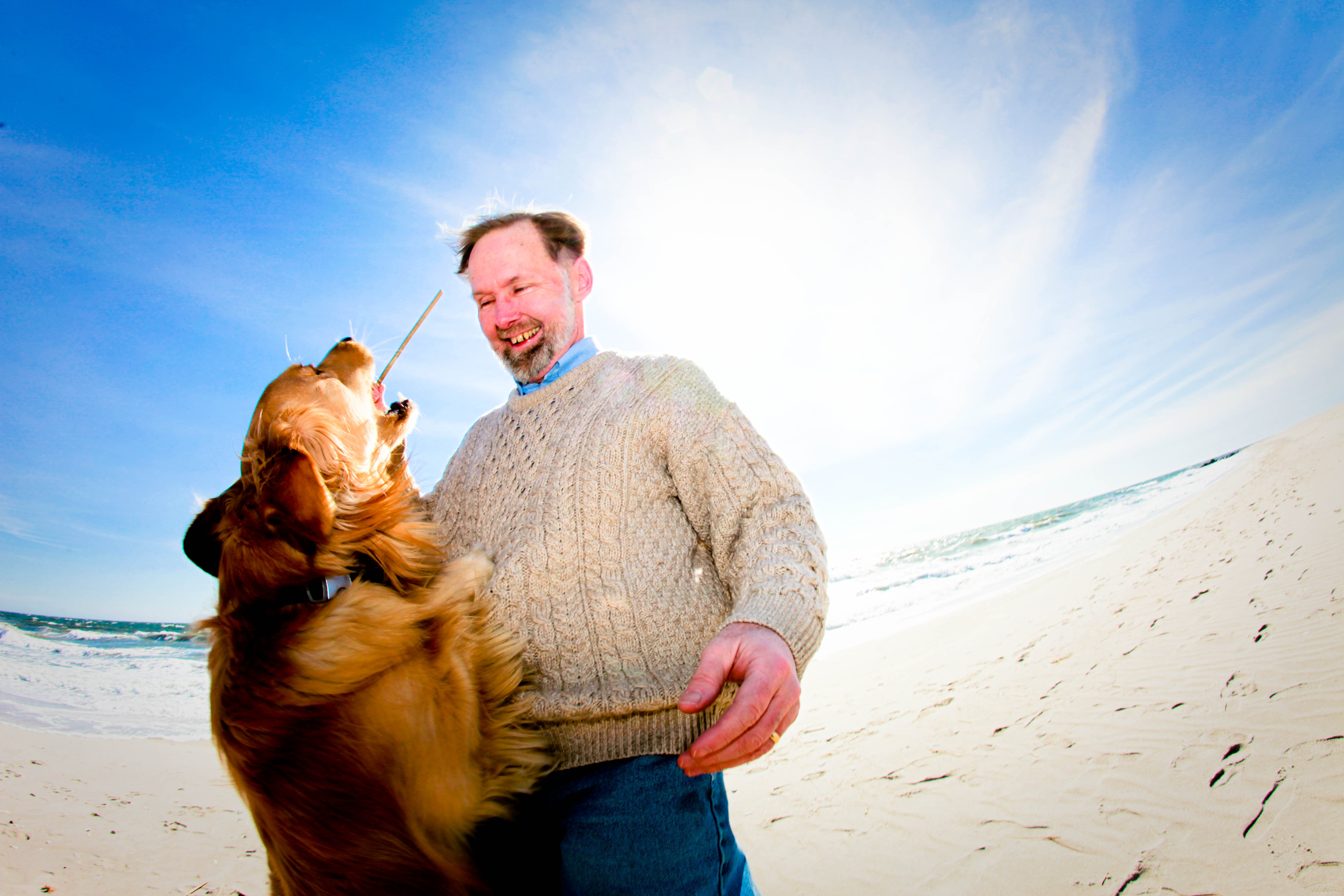 What was funny at the moment (three years later), I was wearing my same favorite Irish sweater. But back to the Golden Retriever Joy. In some of the photos, Joy actually gets airborne. No animals or humans for that matter were injured in the taking of these pictures.