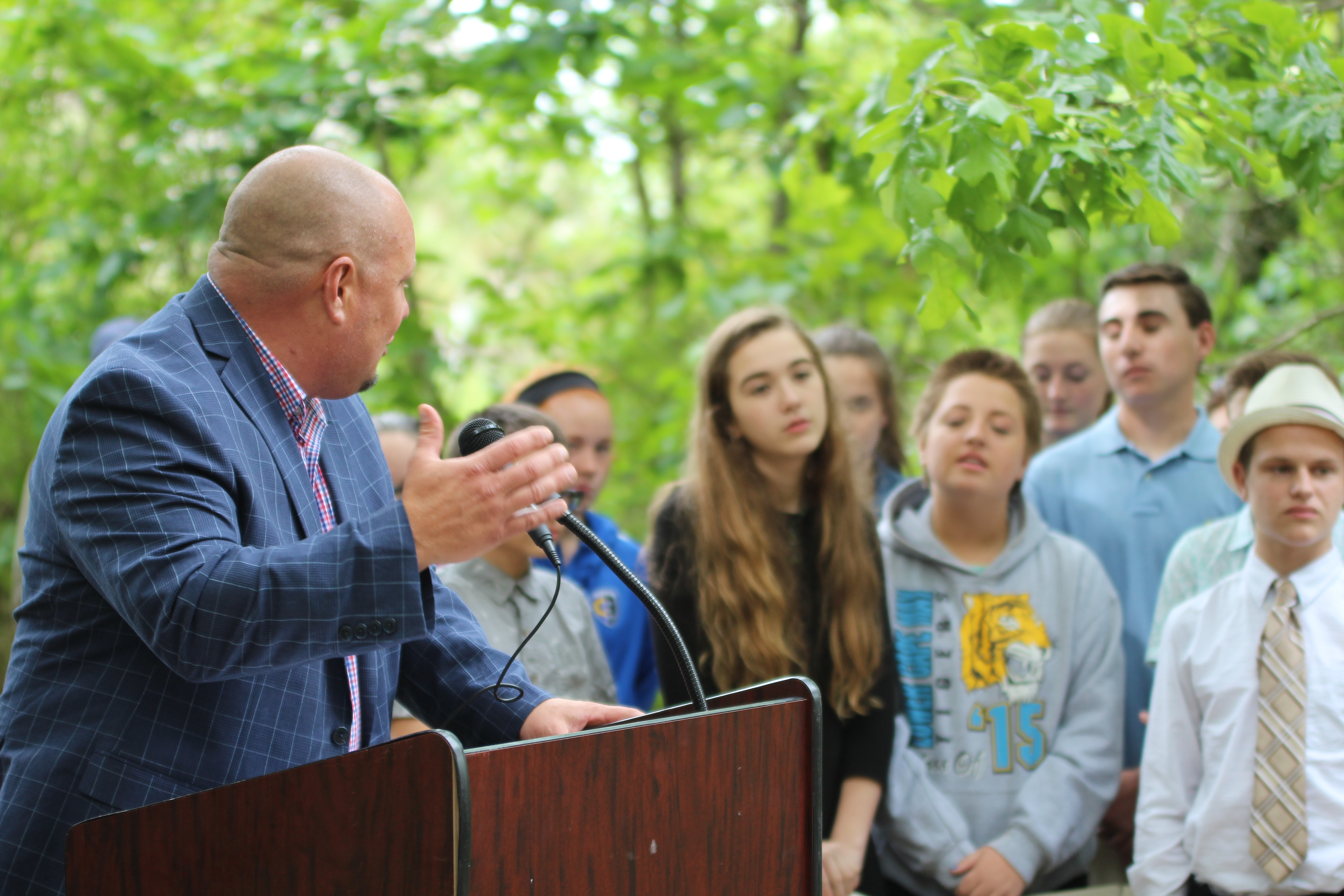 “Mr. Schulte wanted to return the eloquence these veterans deserved,” said 14-year-old Nikolas Frey. An eighth grader at R. M. Teitelman Middle School, Frey spoke at the cemetery rededication ceremony May 24th.